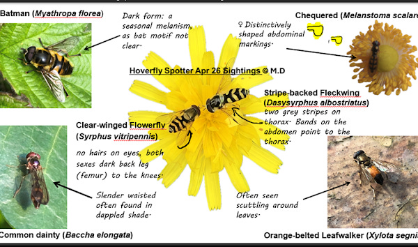 Hoverfly Spotter Apr 26 Sightings part 2. A week of firsts.